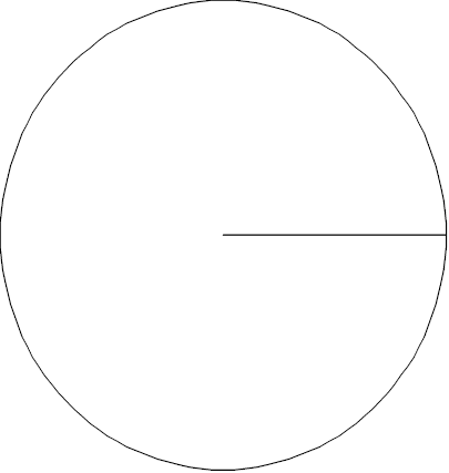 - Using the circle drawn below, make a circle graph of your data. Start with the radius that is already drawn for you, and measure the central angle for the brown M & M’s. Draw the radius needed to make a sector with that angle measure. Use this new radius to measure the central angle for the yellow M&M’s, draw the sector, and work your way around the circle until you have a sector drawn for each color. Make sure your graph has a title, includes the colors, and the percentage for each color.
