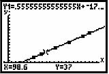 This screen capture shows us that 98.6 °F (x-value) is equivalent to 37 °C (y-value).