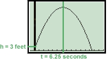 Let's begin by substituting known values for variables in the formula:Since the formula represents a parabola, we must find the vertex of the parabola to find the time it takes for the ball to reach its maximum height as well as the maximum height (called the apex) . Using the vertex formula: