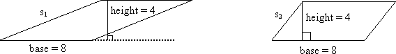 Notice that s1 > s2. These parallelograms show two of the infinitely many possible parallelograms with a base of 8 and a height of 4.