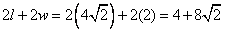 l = 8and the dimensions are 8 x 4.The perimeter is the sum of the lengths of all four sides or2w + 2l = 2(4) + 2(8) = 24
