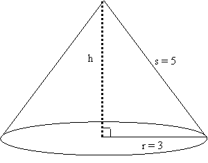 This type of word problem involves the use of known formulas. Usually we used one of the formulas for either volume or surface area, depending on what information was given, to solve for the radius, height, or slant height of the cone. The Pythagorean Theorem must often be used to find a missing radius, height, or slant height. It is necessary to remember that the radius and height always are legs and the slant height always is the hypotenuse of the right triangle. In one case, when both the height and surface area were given, we had to solve a quadratic equation in order to determine the value of r. If that expression had not factored easily, we would have had to used the quadratic formula.