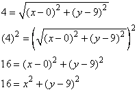 Write the equation of the circle with the following centers and radius.Center: (0, 9)