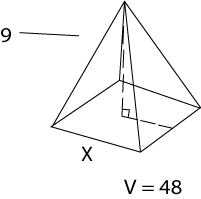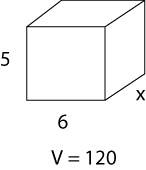Given the volume and sides find x. All sides measured in meters.