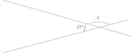 In the eclipse diagrams, a pair of intersecting lines is formed by the lines that ultimately make up the outer boundaries of the penumbra. If the angle at which these lines meet is 37 , find the measure of the marked angle in the figure below.