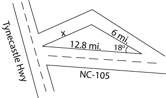 You are heading to Beech Mountain for a ski trip. Unfortunately, state road 105 in North Carolina is blocked off due to a chemical spill. You have to get to Tynecastle Highway which leads to the resort at which you are staying. NC-105 would get you to Tynecastle Hwy in 12.8 miles. The detour begins with a 18 veer off onto a road that runs through the local city. After 6 miles, there is another turn that leads to Tynecastle Hwy. Assuming that both roads on the detour are straight, how many extra miles are you traveling to reach your destination?