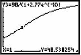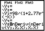 We are given This function and its second derivative can be entered into the Y= screen as shown at below.For this type of function, called a “logistic” model, we know thatand that