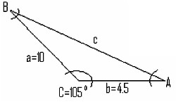 Given triangle ABC with sides: a = 10, b = 4.5, C = 105º.