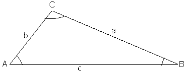 In this lesson, we will investigate how to apply the sine function to an oblique triangle. Consider the following triangle, ABC. Remember that the side and angle of a triangle that share the same name are always across from each other.